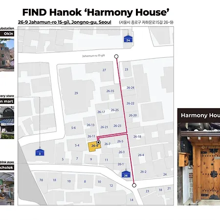Το Luxury Hanok Harmony House Σεούλ 19 τ.μ. Προσφέρει δημόσιο λουτρό θερμής πηγής και τζακούζι, και απέχει μόνο 1 χλμ. από το Παραδοσιακό χωριό Bukchon. Το Παλάτι Gyeongbokgung απέχει 11 λεπτά με τα πόδια από το διαμέρισμα, ενώ η στάση λεωφορείων Tongin Market Jongnogu Public Health Center βρίσκεται περίπου 100 μέτρα από το κατάλυμα.